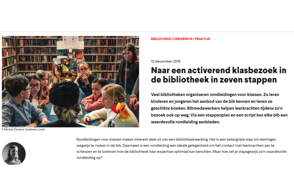 De kiem voor dit piloottraject ligt eigenlijk bij een vraag - uit 2017! - van de bib van Kalmthout. Zij wilden graag hulp van Iedereen Leest bij het herbekijken en optimaliseren van hun klasrondleidingen. Een interessante vraag: ‘We zagen het als een piloottraject,’ zegt directeur Sylvie Dhaene. ‘We wilden zien wat eruit zou komen, want we wisten dat er veel bibs met gelijkaardige vragen zaten.’ Collega Margot Van Dingenen, educatief medewerker, startte een traject op met hen, waarbij ze de betrokken bibmedewerkers ondersteunde en waar nodig bijstuurde. Margot: ‘De basis was er, maar ik hielp hen vooral om andere accenten te leggen.’ Ze ontwikkelden samen een stappenplan, werkvormen, to do-lijsten en een helder script, dat we ook een plaats gaven op de website van Iedereen Leest. Voor de bibmedewerkers van Kalmthout was het een verhelderend en inspirerend parcours. De logische vervolgvraag was: Waarom zouden we die kennis niet met andere bibmedewerkers kunnen delen?