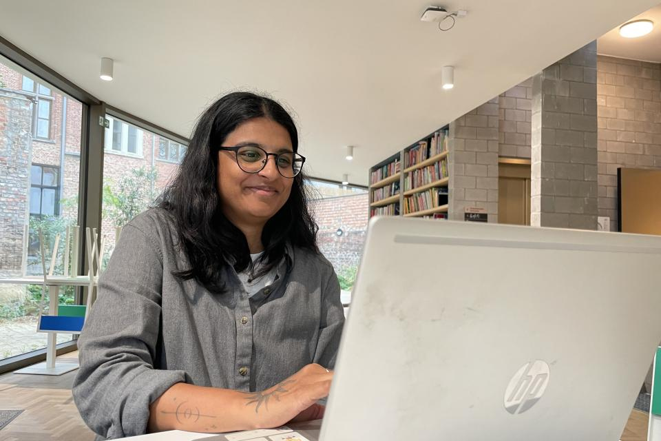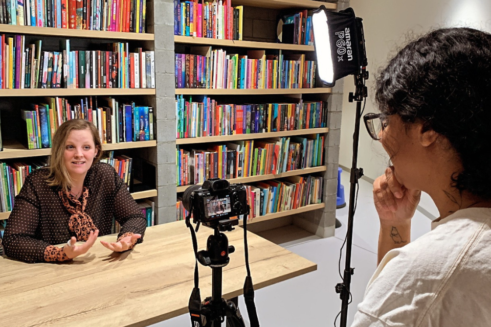Geetha gaat de baan op, al dan niet met cameravrouw Liese. In onder meer Diksmuide, Sint-Niklaas en Evergem volgt ze klasrondleidingen voor kleuters, kinderen uit de lagere school en middelbare scholieren. Met uren aan filmmateriaal en tal van getuigenissen – van bibliotheekmedewerkers en van leerkrachten – komen ze terug. ‘Deze manier van werken was nieuw,’ vertelt Sarah Van Tilburg, coördinator vorming en opleiding. ‘Tot nu toe gingen we vooral aan de slag met expertise en kennis die we in huis al hadden opgebouwd, en nu moesten we volop op zoek naar nieuwe praktijkvoorbeelden. Ook voor de komende leertrajecten zal dat nog vaak het geval zijn.’