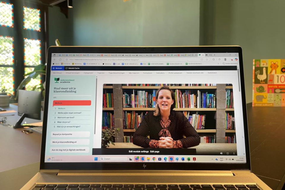 Een grote sprong in de tijd naar het najaar van 2023: de plannen voor het ontwikkelen van een Iedereen Leest Academie liggen er, en er wordt besloten om het traject met de bib van Kalmthout te vertalen naar een online leertraject. Margot: ‘De Academie zou een jaar later gelanceerd worden. We waren iets aan het ontwikkelen dat er nog niet was. We hadden die concrete zaken die we voor Kalmthout ontwikkeld hadden, maar dat was niet genoeg voor een volledig leertraject. Een kader ontbrak: Waarom zijn klasrondleidingen belangrijk? Welke ideeën zitten erachter? Welke andere soorten klasrondleidingen zijn er? En hoe vertalen we dat alles naar een traject met verschillende online leermodules?’ Het puzzelen kon beginnen.