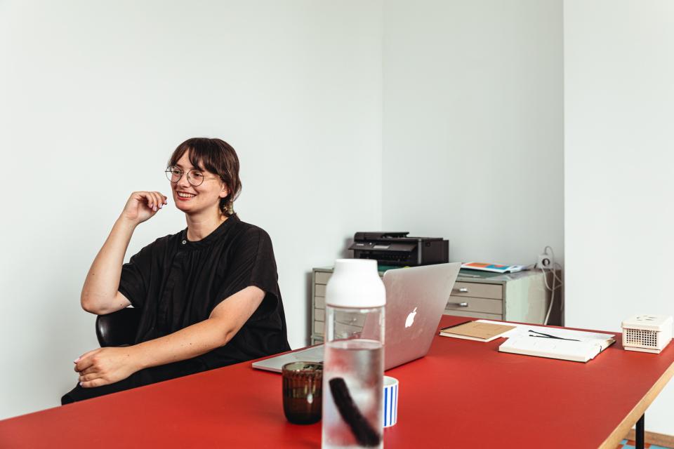 'Ik zit niet graag vast. Daarom zou ik nooit in dienst kunnen werken, of in één bepaalde ruimte. Als ik me echt moet concentreren omdat ik bijvoorbeeld een boekconcept uitdenk, dan kruip ik op zolder, waar mijn man Ringo (Gomez-Jorge, journalist en schrijver, red.) normaal zit, met alleen uitzicht op tuinen en daken. Of als ik 's ochtends het werken minder zie zitten, dan begin ik in de living. Dat voelt minder officieel dan aan mijn bureau. Ik teken alles op een mousepad die eigenlijk onhandig klein is, maar ik hou mezelf er bewust aan gewend omdat ik de vrijheid wil behouden om overal op mijn laptop te kunnen werken.'