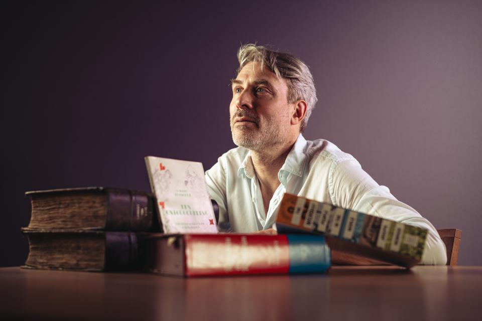 Freek Van de Velde leeft een papieren leven. Hij brengt zijn tijd door in archieven en andere bibliotheken. Zijn liefde voor lezen is onlosmakelijk verbonden met zijn liefde voor taal. Een liefde die al vroeg ontsproot. ‘Op de middelbare school was ik geboeid door al die naamvallen en conjunctieven van het Latijn en Grieks en vroeg mij af: waarom heeft het Nederlands dat nu niet? Waarom voelen die talen zo anders aan?’