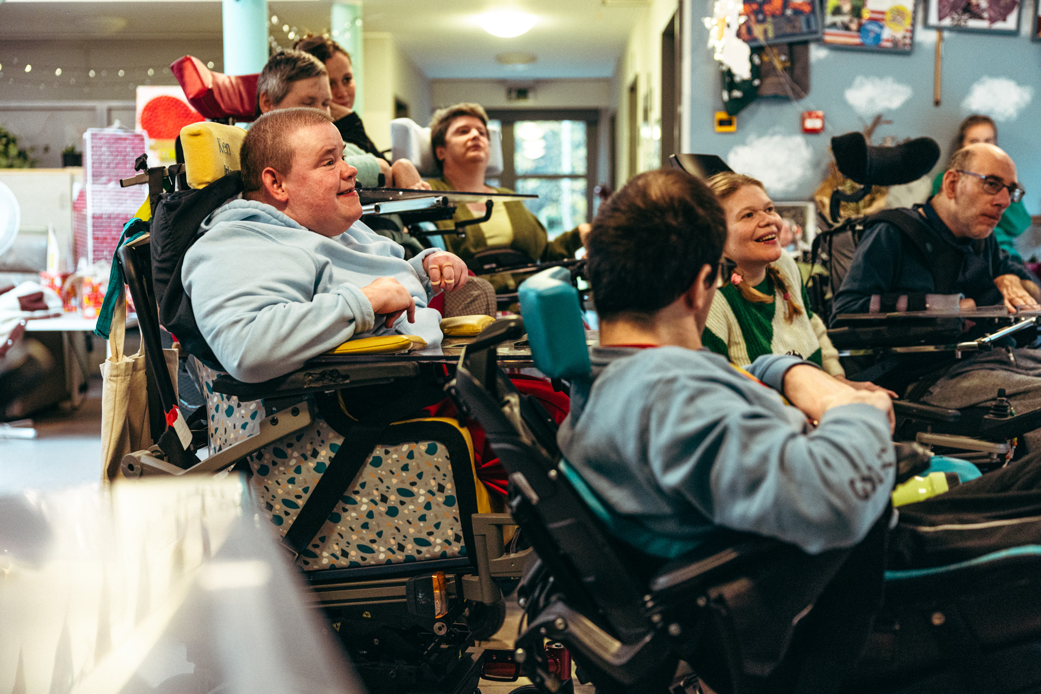 De Gele Duikboot zorgt ervoor dat die ervaringen structureel mogelijk zijn. Karl vertelt over bewoners die via de projecten betekenisvolle rollen opnemen. ‘Neem Noah’, zegt hij. ‘Hij heeft volledig zelf een podcast gemaakt bij Stamp Media. Het stereotype beeld van een gehandicapte in een rolstoel haalt hij daarmee onderuit. Het is een vorm van omgekeerde inclusie: we zorgen dat mensen van buitenaf kennismaken met onze cliënten en hun talenten.’ Ook Barbara ervaart het zo. ‘Het is niet alleen de buitenwereld die binnenkomt in die afgelegen eilanden van de zorg, maar ook omgekeerd. Ik vond het best spannend omdat ik nog nooit in zo'n zorgcentrum geweest was. Alles wat afgesloten is, is vreemd en dus een beetje eng. Daarom vond ik het voor mezelf belangrijk om mijn eigen veilige wereldje te verlaten en deze stap te zetten. En dan te zien dat het allemaal niet zo 'anders' hoeft te zijn. Als literatuur mensen dichter bij elkaar kan brengen, dan is het toch al dat. Het is een win-win dus om dit als verhalenverteller af en toe te mogen doen.’