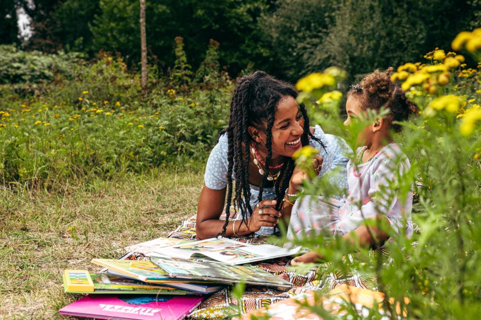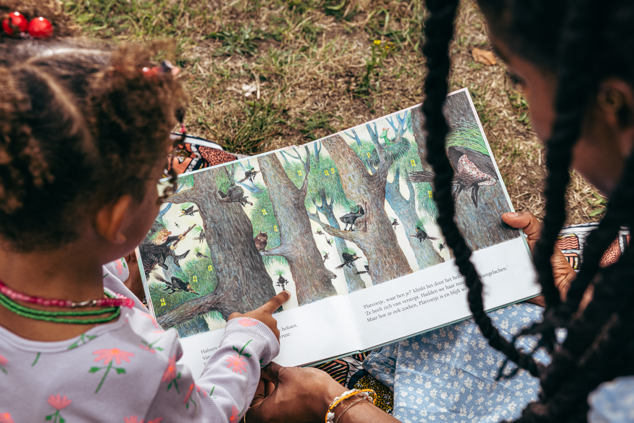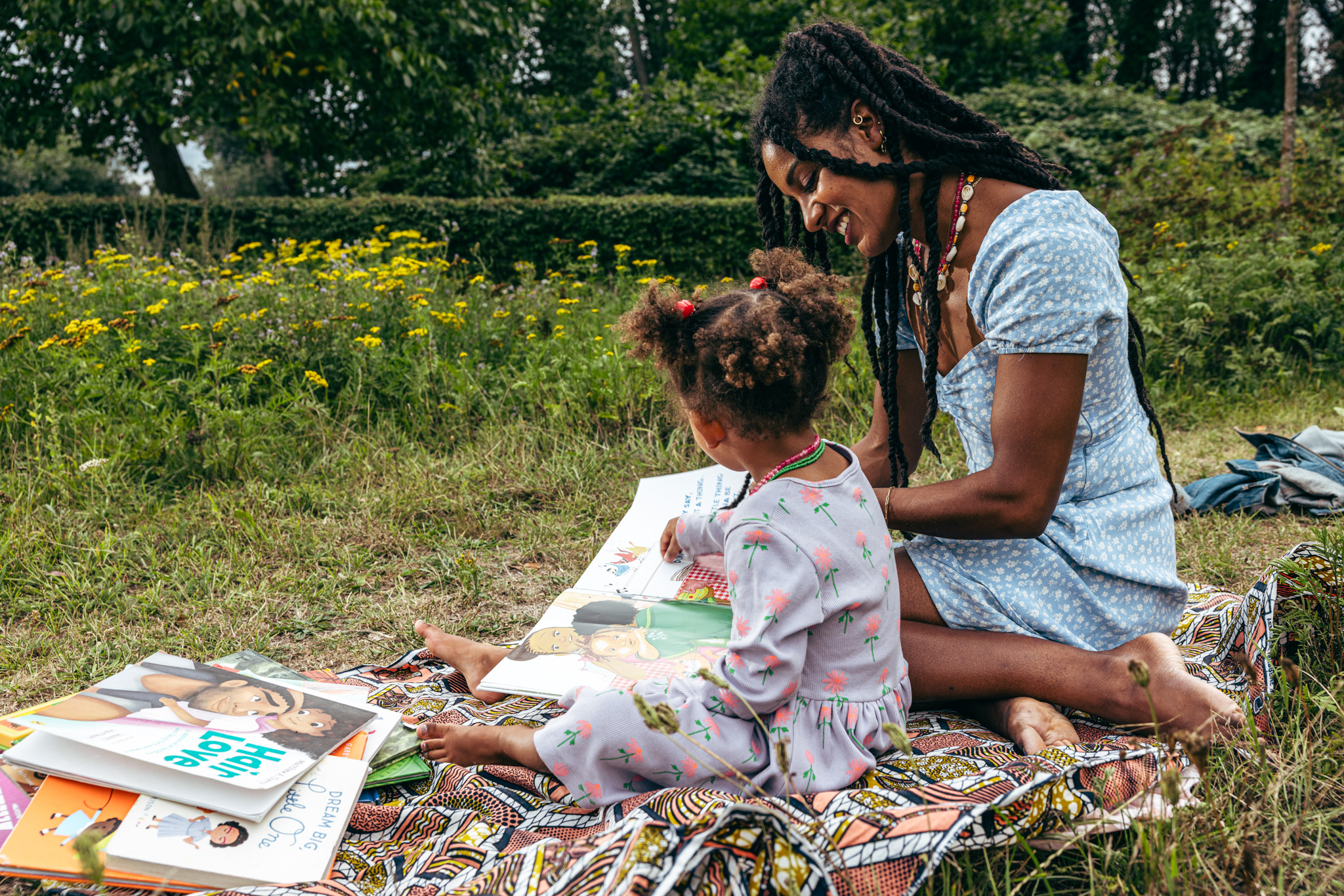 ‘Omdat ik die ervaring lang heb gemist, let ik erop dat mijn dochter zich wel kan herkennen in de boeken die ik voorlees. Zo moeilijk is dat vandaag niet meer. Zeker in het Engels heb je een groot aanbod aan boeken met personages van kleur, maar ook in Nederlandstalige kinderboeken zie je steeds meer diversiteit. Inspiratie vind ik online bij Cargo Confetti, een platform voor inclusieve kinderboeken. En verder probeer ik, als ik ergens kom, mooie boekhandels op te zoeken.’