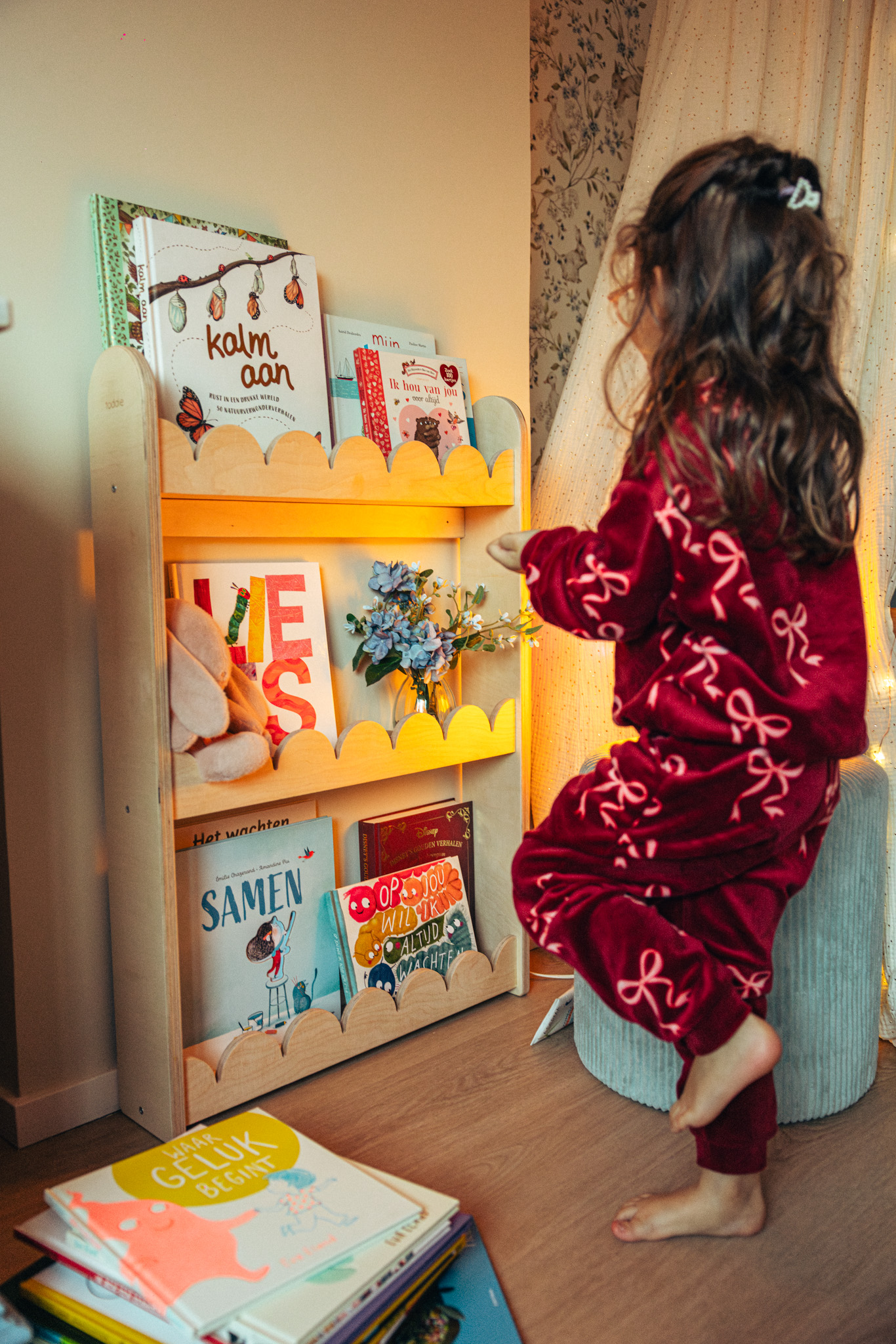 “Ik wilde altijd al mama worden en had al voor haar geboorte een enorme boekenkast met kinderboeken. Die vroegen om een kindje om aan voor te lezen. Sinds haar komst is de collectie alleen maar uitgebreid.”
