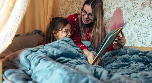 In de reeks ‘De voorleesboekenkast’ gaan we op bezoek bij enthousiaste voorlezers en hun kinderen. Wat zijn hun favoriete voorleesboeken? Hoe ziet hun voorleesritueel eruit? In deze aflevering duiken we in de voorleesboekenkast van kleuterjuf-in-pauze en influencer Mevin Vranken (@juf.mevin) en haar dochter Odette van vier.