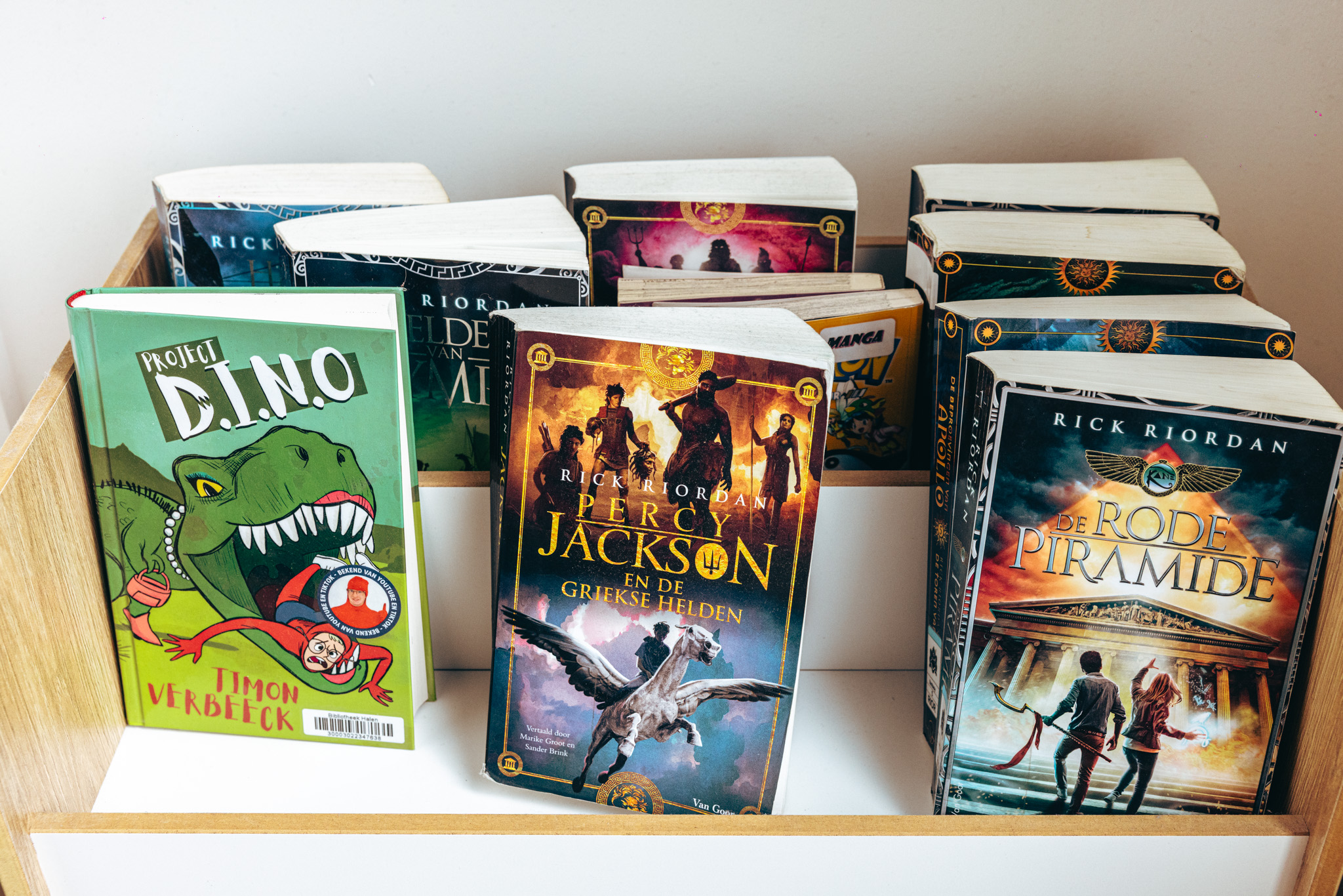 ‘Daarnaast lezen de kinderen elke avond zelf in bed terwijl ik naast hen lig. Bij de jongste volg ik het verhaal mee en stel ik af en toe een vraag om te kijken of hij alles goed heeft begrepen. Technisch is hij heel sterk maar zijn verhaalbegrip kan ik nog niet altijd goed inschatten. Zo probeer ik hem te ondersteunen. De oudste leest op zichzelf. We hebben allebei een e-reader met een Storytel-abonnement en ik lig dan gezellig naast hem in mijn eigen boek te lezen. Veel ondersteuning heeft hij niet nodig. Momenteel leest hij Percy Jackson en de Olympiërs van Rick Riordan - hij is helemaal fan van mythologie. Hij vraagt weleens wat een bepaald begrip betekent. Bij Harry Potter probeerde hij me soms te ontfutselen hoe het verhaal zou aflopen. Toen heb ik de regel ingevoerd dat hij per boek één vraag mocht stellen (lacht).’