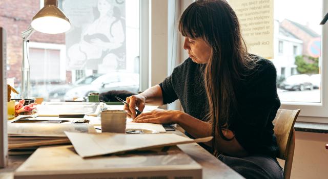 Hoe ziet de werkruimte van illustratoren eruit? Wat zijn hun rituelen, talismannen en eigenaardigheden? Waaruit putten ze inspiratie en hoe komen ze tot hun beste werk? Journaliste Katrien Steyaert mag binnenkijken in hun ateliers en in hun creatieve geesten. Michiel Devijver maakt er foto’s bij.